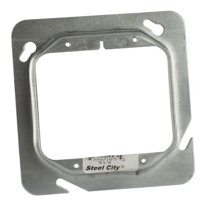 One Gang Square Device Cover, 1 Cubic Inches, 4 Inch Square X 1/4 Inch Raised, Pre-Galvanized Steel, For Drywall Construction