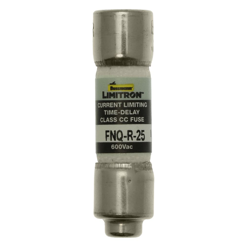 Eaton Bussmann Series FNQ-R Fuse, 25 A, Class CC, Non-Indicating, Ferrule End X Ferrule End, 12 Sec At 200%, 200 Kaic, Melamine Tube, Standard, 600 V