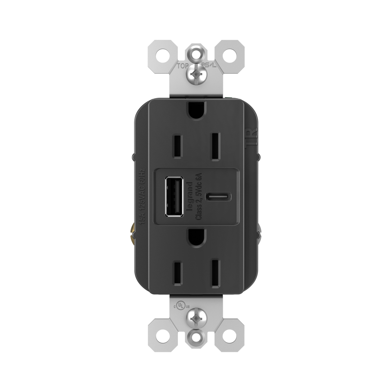Charge phones, tablets and more up to 40% faster, with USB Outlets from the radiant® Collection. With an industry-leading 27W of power supplying the included USB Type-A and USB Type-C connections, this outlet helps you get that full battery feeling with convenience and speed – no bulky adapters needed. Easily replacing traditional outlets in as little as ten minutes, this USB updates your space with advanced functionality and the sleek, clean lines of radiant for a sophisticated look. Made exclusively f