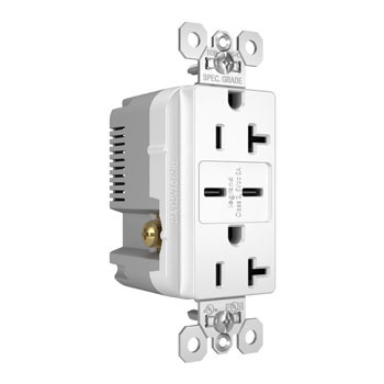 20A 125V TR Rec + 2 Usbc Fast CHRG WH