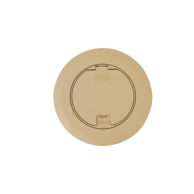 Recessed Service Floor Box Cover Kit, Accepts Duplex Receptacles GFI Receptacles and 2 Port Keystone Data Plate, Beige, Non-Metallic, For Use With Flush Service Floor Box, 100 Cubic Inches, Opening Diameter 5-5/32 Inches, Base Diameter 6-3/8 Inches, Depth 6 Inches, 3/4 Inch and 1 Inch Conduit Tapping, Plastic, For Power or Communications/Data and Wood Sub-Floor and Raised Floor Applications