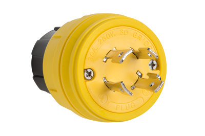 Locking Device Turnlock Plug, 30 A, 250 V Ac, 2 Poles, 3 Wires, Black/White, Nylon Material, -40 °C Operating Temperature, +75 °C Operating Temperature, 2.20 In;0.225 to 1.150 In (Cord) Diameter, Plug Mount, 3.75 In Length, #18 to #8 Awg Wire Size, Impact and Corrosion Resistant, 0.35 LB