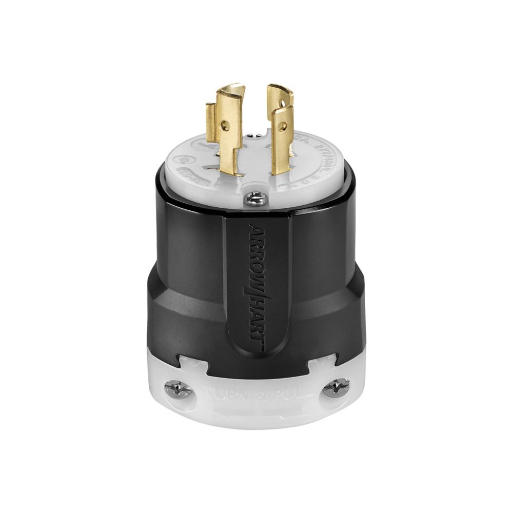 Locking Device Turnlock Plug, 20 A, 480 V, 2 Poles, 3 Wires, Black/White, Thermoplastic, -40 °C Operating Temperature, +75 °C Operating Temperature, 2.20 In Diameter, 3.75 In Length, 0 to #18 Awg Wire Size, Corrosion Resistant, 0.34 LB