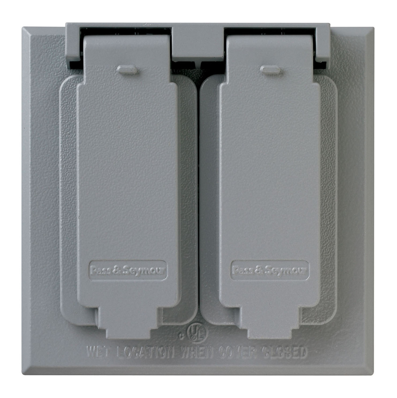 Weatherproof Cover, 2 Gang, 4.58 (W) X 4.52 (H) In, Ceiling;Wall Mount, Die-Cast Aluminum, Gray, 0.6800 LB